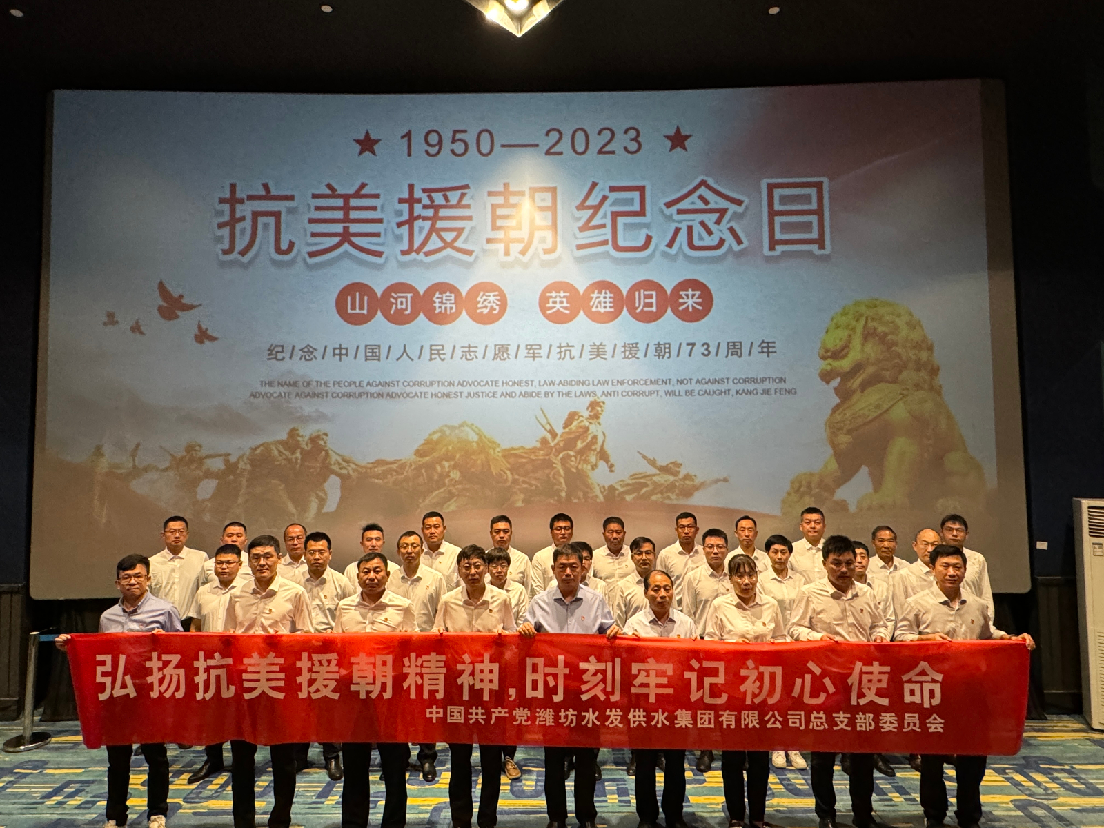 10月25日是抗美援朝73周年紀(jì)念日,為教育引導(dǎo)廣大黨員干部弘揚(yáng)英模精神,重溫先烈英雄事跡,弘揚(yáng)偉大抗美援朝精神。供水集團(tuán)黨總支組織開展“弘揚(yáng)抗美援朝精神 時(shí)刻牢記初心使命”主題黨日活動(dòng)。通過重溫入黨誓詞、觀看愛國主義電影等方式,引導(dǎo)廣大黨員干部弘揚(yáng)傳承家國情懷,把愛國奮斗內(nèi)化于心,外化于行。
